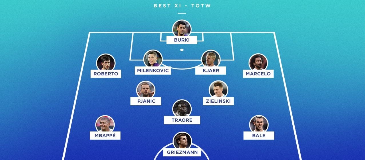 CM Piotr Zieliński (Napoli) – Carlo Ancelotti’s Napoli came from 2-0 down to beat AC Milan 3-2, thanks to a late winner from Dries Mertens off the bench. However, the man that made it all happen was Zieliński. Filling the void left by Jorginho, the Polish international scored a superb brace to drag his team back into the game.