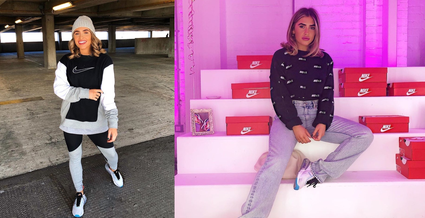 Reppin’ the Swoosh from head to toe, style-queen Emily shows us how to work a full Nike ‘fit and stay cosy with oversized layering on those chill, sofa days. With subtle colour blocking for amped up style, she uses denim to take her look from day to night with the all-new Air Max 2090.