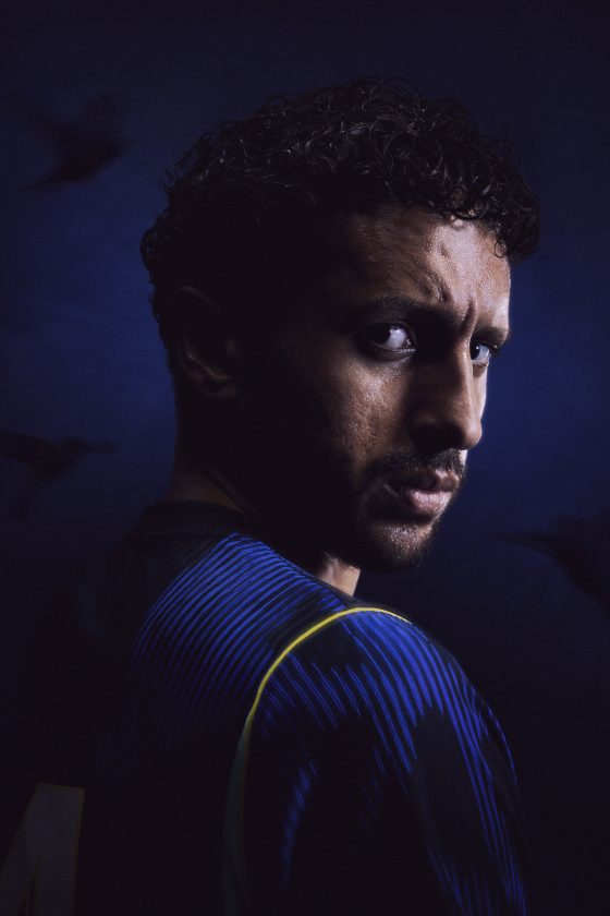 The kit’s packed full of energy. Old Royal and Black shades form vertical stripes inspired by burning embers.