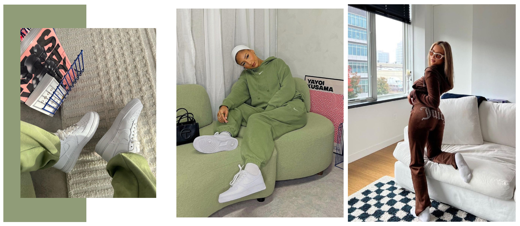 Upgrade your sofa staples like Antionette! Repping the Swoosh from head to toe, this super-cute green hoodie and joggers set adds an extra dose of colour to your looks 💚. Keeping it classic with a pair of Air Force One’s, we’re lovin’ this look!