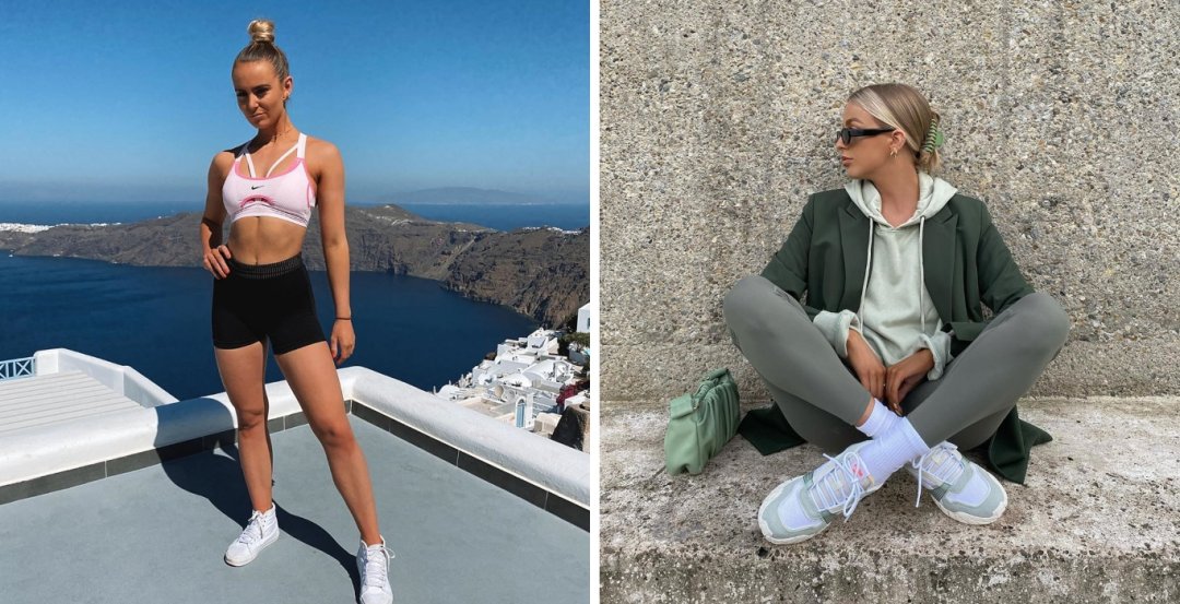 Personal trainer, Hebe is stayin’ supported in her workouts wearing her new Nike BFF; the Ultrabreathe sports bra! If only all workouts were in Santorini…