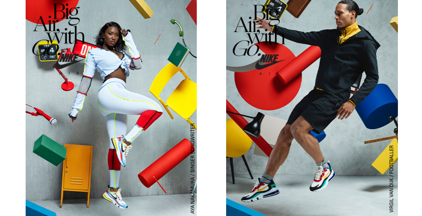 French singer Aya goes big with shapes and colours! Takin’ inspo from the pops of colour in the overlays of her AM270 Reacts, she’s working a fresh white ‘fit with hits of red, yellow and blue. Matching is a total mood.