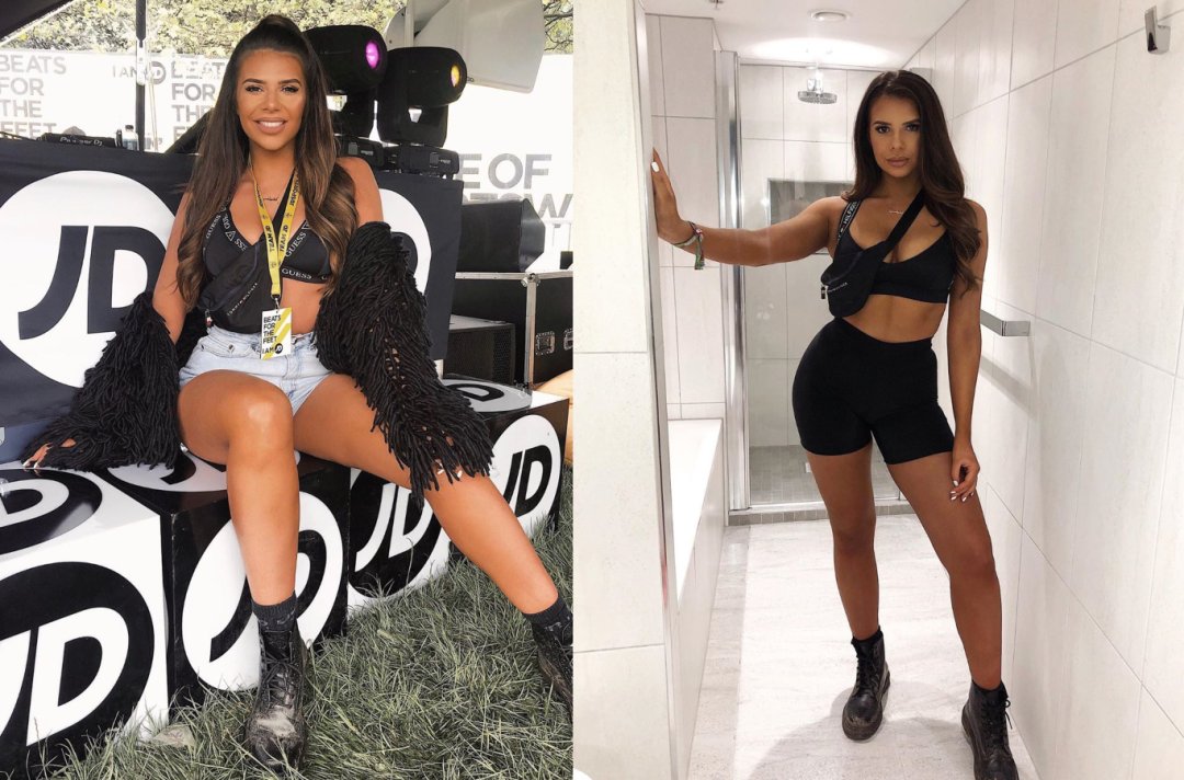 Ex on the Beach star Katie turned up the festival heat! On Saturday she stepped out in a full Nike ‘fit and we’re all over the black and purple combo! Werkin’ a sporty look, Katie looked gorg in a Nike sports bra and purple cycle shorts – paired perf’ with the Air Force 1 Sage Low and a dreamy ponytail (we’re getting Ariana vibes).