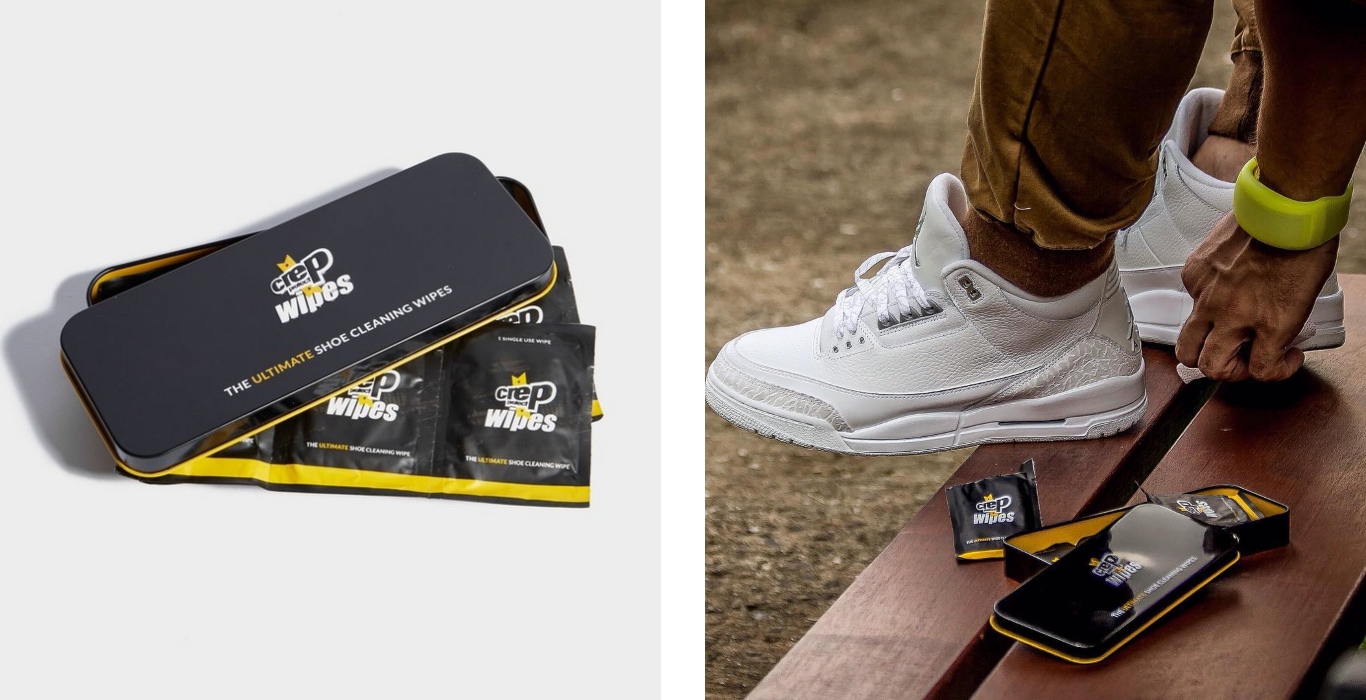 Keep your kicks looking fresh with Crep Protect Wipes. Ideal for a once-over, these wipes are the portable maintenance you need! Perf’ for those tiny splashes or mini marks, each wipe has both a smooth and textured side. Suitable for use on leather, canvas, nylon and a host of other materials, the smooth side, used for spot cleanin’ the upper, will keep you trainers lookin’ on-point every day while the textured side will take care of stubborn marks and that difficult midsole. Keep ‘em close by in your bag or wallet in case you spill something on your creps – they will come thru.