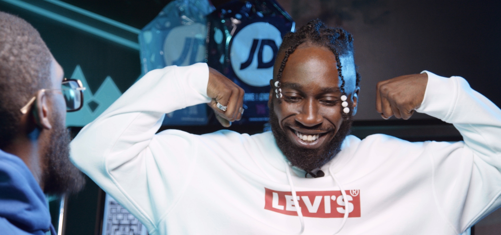 Linkin’ up on the shoot of our Christmas ad, JD regular Specs Gonzalez played host to our VIP guest, British hip hop rapper Kojey Radical!