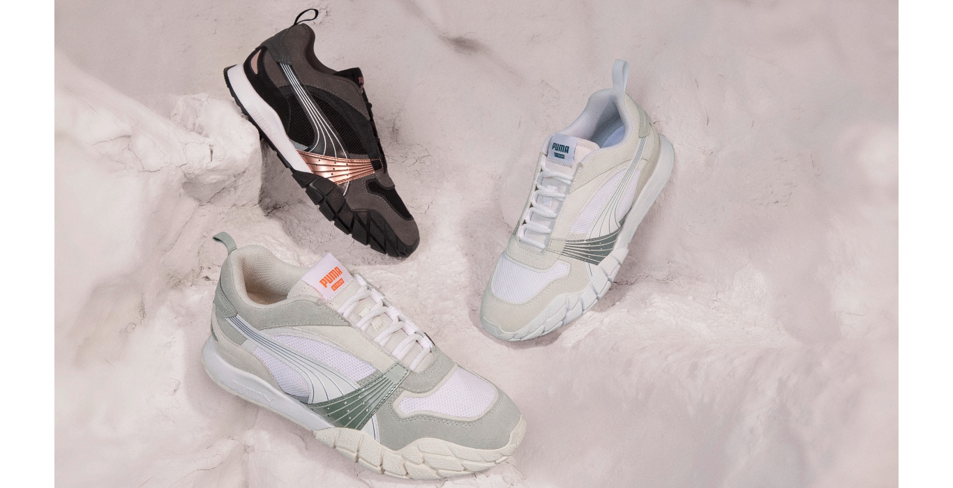 The new silhouette takes inspo from high fashion, and combines it with elements from PUMA’s archives. It’s built with a sporty mesh upper and has premium suede overlays for extra support. Sleek and streamlined, these trainers are sat on an ultra-light CMEVA midsole for soft and springy cushioning.