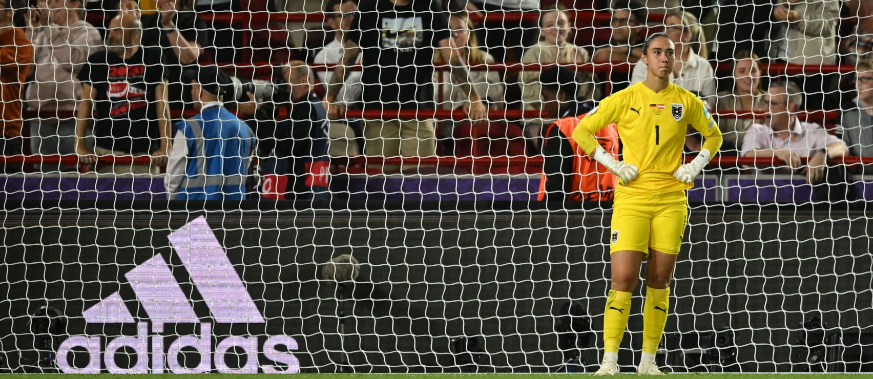 Despite Austria striking the post early on from a corner, a stray clearance from Manuela Zinsberger led to Lina Magull finding herself unmarked 12 yards out, finishing first time past the out of position goalkeeper.